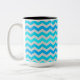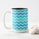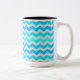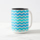 Mug joyeux avec de grandes rayures bleues et aqua à chevrons.