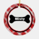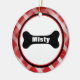 Aimez votre animal familier en le mettant sur votre arbre de Noël ! Cet ornement de Noël a un guingan rouge, un arrière - plan checkered avec un cercle central décrit en rouge et un noir. Il y a un centre blanc avec un grand os de chien noir. Personnalisez avec le nom. Vérifiez les nombreuses autres conceptions que nous avons dans notre magasin et autre stocke trop : Kidsgalore et Skinsgalore
