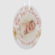 Un ornement photo personnalisé pour les grands-parents pour Noël. Le design comprend des flocons de neige et un mélange de typographie manuscrite et élégante dans de jolies teintes d'or, de pêche rousse et de terre cuite. Le modèle photo est conçu pour que vous puissiez ajouter votre nouvelle photo de bébé et vous pouvez aussi ajouter l'année et un message pour leur nouveau petit-enfant sur le dos.