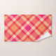Serviette sertie en grande taille, plaid moderne rétro dans les tons pastel à corail orange foncé, rose corail et rose fuchsia profond