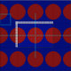 Le tissu géométrique élégant comporte un motif audacieux de grand pois rouge sur un arrière - plan bleu.