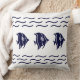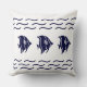 Grand poisson bleu marine & vagues sur un COUSSIN