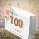 Grand Sac Cadeau 100e anniversaire fleuri rose or eucalyptus nom