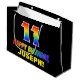 Ce modèle de sac cadeau d'anniversaire amusant, coloré et joyeux comporte un grand nombre de "11" et le message "HAPPY BANTHDAY", tous deux colorés avec un motif inspiré par un gradient de spectre arc-en-ciel, ainsi qu'un nom de destinataire modifiable jaune gras. L'arrière - plan est noir de couleur. Un sac cadeau d'anniversaire amusant comme celui-ci pourrait être utilisé pour envelopper un cadeau ou un cadeau donné à quelqu'un qui célèbre son 11e anniversaire. [~Z0000477]