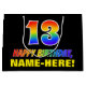 Ce modèle de sac-cadeau d'anniversaire amusant, coloré et gai comporte un grand nombre de "13" et le message "HAPPY BANTHDAY", tous deux colorés avec un motif inspiré par un gradient de spectre arc-en-ciel, ainsi qu'un nom de destinataire modifiable jaune gras. Le arrière - plan est noir de couleur. Un sac-cadeau amusant à thème d'anniversaire comme celui-ci peut être utilisé pour envelopper un cadeau ou un cadeau donné à quelqu'un qui célèbre son treizième anniversaire. [~Z0000477]