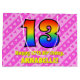 Ce modèle de sac cadeau de 13e anniversaire, optimiste et festif, est doté d'un grand nombre de "13" dont le motif s'inspire de l'apparence d'un arc-en-ciel. Il comporte également le message "Joyeux 13ème anniversaire", suivi d'un nom modifiable. L'arrière - plan est doté d'un motif à rayures rose foncé et rose clair, aux coeurs roses aimés. Un sac cadeau comme celui-ci peut être utilisé pour envelopper des cadeaux ou des cadeaux donnés en l’honneur du treizième anniversaire de quelqu’un. [~Z0000414]