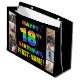 Ce modèle de sac cadeau d'anniversaire attrayant et joyeux comporte le message "HAPPY 18TH BANTHDAY", avec le texte ayant un motif dégradé multicolore inspiré du spectre arc-en-ciel, avec un nom de destinataire personnalisé. À gauche et à droite du message à motif arc-en-ciel sur le devant se trouvent des photos qui peuvent être personnalisées, peut-être avec des photos du destinataire, de la famille et des amis du destinataire et/ou de l’expéditeur du cadeau. Un sac cadeau d'anniversaire comme celui-ci peut être une façon amusante d'envelopper un cadeau ou un cadeau qui est donné à quelqu'un qui célèbre son dix-huitième anniversaire. (Photographie © Storytree Studios, Stanford, CA.) [~Z0000668]