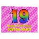 Ce modèle de sac cadeau de 19e anniversaire heureux et optimisé comprend un grand nombre de "19" ayant un motif inspiré par l'apparence d'un spectre arc-en-ciel. Il comporte également le message "Joyeux 19e anniversaire", et un nom personnalisé. L'arrière - plan est doté d'un motif à rayures rose foncé et rose clair, aux coeurs roses aimés. Des sacs-cadeaux comme celui-ci peuvent être utilisés pour envelopper des cadeaux ou des cadeaux donnés pour célébrer le dix-neuvième anniversaire de quelqu’un. [~Z0000414]