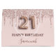 Elégant, classique, glamour et girly pour une fête de 21ème anniversaire. Un arrière - plan rose vif chic. Décoré avec des gouttes de parties scintillant rose, la peinture goutte à goutte. Personnalisez et ajoutez un nom. Avec le texte : Joyeux anniversaire. Le nom est écrit avec un script de style moderne écrit à la main. Le numéro 21 est écrit avec une police de style ballon.