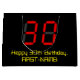 Cette conception de sac cadeau d'anniversaire amusant et nerdy comprend un grand nombre de "30" avec un affichage numérique à sept segments rouge inspiré, avec le message "Happy 30th Birthday," et un nom modifiable dans un texte jaune d'inspiration informatique nerveuse, sur un arrière - plan de couleur noire. Des sacs-cadeaux personnalisables comme celui-ci pourraient être utilisés pour envelopper des cadeaux ou des cadeaux donnés à quelqu'un qui célèbre son trentième anniversaire. [~Z0000389]