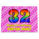 Ce modèle de sac cadeau optimisé et heureux de 32e anniversaire a un grand nombre de "32" avec un motif dégradé inspiré du spectre arc-en-ciel. Il comporte également le message "Happy 32nd Birthday," et un nom modifiable. L'arrière - plan est doté d'un motif amusant de rayures rose foncé et rose clair, aux coeurs roses aimés. Des sacs-cadeaux comme celui-ci pourraient être utilisés pour envelopper des cadeaux ou des cadeaux donnés à quelqu'un qui célèbre son trente-deuxième anniversaire. [~Z0000414]