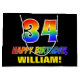 Ce sac cadeau d'anniversaire amusant, gai et coloré design comprend un grand nombre de "34" et le message "HAPPY BANTHDAY", tous deux avec une couleur motif inspirée du gradient de l'arc-en-ciel, ainsi qu'un nom de destinataire modifiable jaune gras. L'arrière - plan est noir de couleur. Un sac cadeau amusant comme celui-ci peut être utilisé pour donner un cadeau ou un cadeau en l’honneur du trente-quatrième anniversaire de quelqu’un. [~Z0000477]