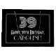 Ce giftbag à thème d'anniversaire à l'allure vintage des années 20 s'inspire d'un grand modèle art déco inspiré numéro "39", le message "Happy 39th Birthday", un nom personnalisable, et un motif de bordure composé de lignes fines. L'arrière - plan est noir de couleur. Un sac cadeau comme celui-ci peut être utilisé pour envelopper des cadeaux donnés à quelqu'un pour célébrer son trente-neuvième anniversaire. [~Z0000497]