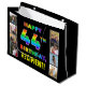 Cette conception de sac cadeau d'anniversaire audacieuse et joyeuse comporte le message "HAPPY 44TH BANTHDAY", avec le texte ayant un motif dégradé multicolore inspiré du spectre arc-en-ciel, avec un nom de destinataire personnalisable. Les photos à gauche et à droite du message à motif arc-en-ciel sur le devant de la carte peuvent être personnalisées, peut-être avec des photos du destinataire, de la famille et des amis du destinataire, et/ou de l’expéditeur du cadeau. Un giftbag comme celui-ci pourrait être utilisé pour donner un cadeau en l’honneur du quarante-quatrième anniversaire de quelqu’un. (Photographie © Storytree Studios, Stanford, CA.) [~Z0000668]
