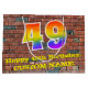 Ce giftbag design animé et amusant d'anniversaire, inspiré de l'art de rue, comporte un grand nombre de "49" avec un dégradé arc-en-ciel inspiré motif, avec le message "Happy 49th Birthday," et un nom personnalisé. L'arrière - plan dispose d'un motif de style mur en brique. Un sac cadeau d’anniversaire comme celui-ci peut être une façon amusante d’envelopper un cadeau ou un cadeau pour célébrer le 49e anniversaire de quelqu’un. [~Z0000522]