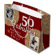 Red 50 et Fabulous Gold Parties scintillant 2 Photo 50th Birthday Cadeau sac. Parties scintillant en or Faux sur rouge avec 2 photos - vous pouvez utiliser une vieille et une nouvelle photo. Ajoutez votre nom et votre âge et faites un grand sac cadeau personnalisé élégant pour la célébration de l'anniversaire de l'événement.