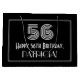 Ce style vintage des années 20 Roaring inspiré design de giftbag d'anniversaire comprend un grand look art déco inspiré du numéro "56", le message "Happy 56th Birthday," un nom personnalisé, et un motif de bordure composé de lignes fines. Il dispose également d'une arrière - plan de couleur noire. Un sac cadeau comme celui-ci peut être utilisé pour donner un cadeau ou un cadeau en l’honneur du 56e anniversaire de quelqu’un. [~Z0000497]