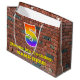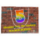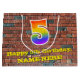 Ce design de sac cadeau d'anniversaire coloré et dynamique, inspiré de l'art urbain et des graffitis, comprend un grand nombre de "5" avec un motif inspiré par un gradient de spectre arc-en-ciel, ainsi que le message "Happy 5th Birthday," et un nom personnalisé. Il dispose également d'un arrière - plan motif de style brique. Un sac-cadeau comme celui-ci peut être utilisé pour envelopper les cadeaux donnés à quelqu'un pour célébrer son 5e anniversaire. [~Z0000522]