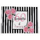 Classic mince bandes verticales noir et blanc comme arrière - plan. Avec des fleurs roses, féminines et romantiques, roses comme décoration. Parfait pour une soirée de 60e anniversaire élégante pour elle. Avec le texte : 60 et Fabulous. Un cadre blanc et noir avec des modèles pour le nom et l'âge. Numéro d'âge 60 en rose, nom en noir. Le nom est écrit avec un script de style écrit à la main.