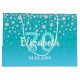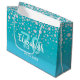 Un sac cadeau élégant et glamour de 70e anniversaire. Turquoise, bleu vert dégradé couleur fausse parties scintillant avec faux sprinkle diamant. Modèles pour un nom, 70 ans et une date. Date de naissance ou date de la fête/anniversaire. Lettres blanches et turquoises. Le nom est écrit avec un script de style écrit à la main.