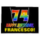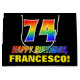 Ce sac cadeau joyeux, coloré et amusant sur le thème de l'anniversaire est doté d'un grand nombre de "74" et du message "HAPPY BANTHDAY", tous deux avec un dégradé arc-en-ciel coloré inspiré couleur motif, avec un nom de destinataire personnalisé jaune gras. L'arrière - plan est noir de couleur. Un sac cadeau d'anniversaire amusant comme celui-ci pourrait être utilisé pour envelopper un cadeau ou un cadeau donné à quelqu'un qui célèbre son 74e anniversaire. [~Z0000477]