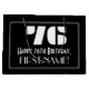 Cette apparence vintage style années folles inspirée par le thème d'anniversaire conception de sac cadeau avec un grand style art déco inspiré numéro "76", le message "Happy 76th Birthday," un nom personnalisé, et un motif de bordure composé de lignes fines. L'arrière - plan est noir de couleur. Un sac cadeau d’anniversaire comme celui-ci peut servir à envelopper un cadeau ou un cadeau pour célébrer le soixante-seizième anniversaire de quelqu’un. [~Z0000495]