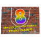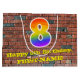 Ce design de sac cadeau d'anniversaire amusant et coloré, inspiré de l'art urbain, dispose d'un grand nombre de "8" ayant un dégradé arc-en-ciel inspiré motif. Il comporte également le message "Joyeux 8e anniversaire", et un nom personnalisé. Il dispose également d'un arrière - plan motif de style brique. Un giftbag à thème d'anniversaire vibrant comme celui-ci pourrait être une façon amusante d'envelopper un cadeau ou un cadeau qui est donné à quelqu'un qui célèbre son huitième anniversaire. [~Z0000522]