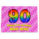 Ce modèle de sac cadeau amusant et joyeux de 90e anniversaire a un grand nombre de "90" avec un motif dégradé inspiré du spectre arc-en-ciel. Il comporte également le message "Joyeux 90e anniversaire", et un nom personnalisable. L'arrière - plan est doté d'un motif à rayures rose foncé et rose clair, aux coeurs roses aimés. Des sacs-cadeaux comme celui-ci pourraient être utilisés pour envelopper des cadeaux ou des cadeaux donnés à quelqu'un qui célèbre son quatre-vingt-dixième anniversaire. [~Z0000414]