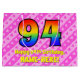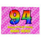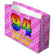 Ce joyeux et amusant 94ème anniversaire de conception de sac cadeau à thème dispose d'un grand nombre "94" ayant un motif inspiré par l'aspect d'un arc-en-ciel spectre. Il comporte également le message "Joyeux 94ème anniversaire", et un nom modifiable. L'arrière - plan est doté d'un motif amusant de rayures rose foncé et rose clair, aux coeurs roses aimés. Un sac cadeau comme celui-ci peut être utilisé pour envelopper des cadeaux ou des cadeaux donnés pour célébrer le quatre-vingt-quatorzième anniversaire de quelqu’un. [~Z0000414]