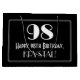 Ce modèle des années 20 Roaring inspiré d'apparence vintage conception de sac cadeau d'anniversaire avec un grand look art déco inspiré numéro "98", le message "Happy 98th Birthday," un nom personnalisé, et un motif de bordure composé de lignes fines. Il dispose également d'une arrière - plan de couleur noire. Un sac cadeau d'anniversaire comme celui-ci peut être utilisé pour envelopper un cadeau ou un cadeau donné à quelqu'un qui célèbre son quatre-vingt-dix-huitième anniversaire. [~Z0000496]