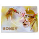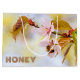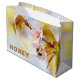 Abeille de miel sur les fleurs roses d'un cerisier japonais - sakura. La beauté du printemps. Couleurs douces rose et jaune. Imprimez et offrez des cadeaux à tous. Sac cadeau horizontal. Vous pouvez modifier ou supprimer l'image et le texte modèle Honey.