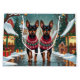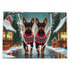 This festive design captures the joyful spirit of the holiday season, featuring an adorable dogs.Nestled in a winter wonderland, complete with a decorated Christmas tree, and beautifully wrapped presents. Snowflakes gently fall, adding a magical touch to the scene, while the vibrant colors of the holiday decorations create a warm and cheerful atmosphere.