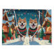 This festive design captures the joyful spirit of the holiday season, featuring an adorable dogs.Nestled in a winter wonderland, complete with a decorated Christmas tree, and beautifully wrapped presents. Snowflakes gently fall, adding a magical touch to the scene, while the vibrant colors of the holiday decorations create a warm and cheerful atmosphere.