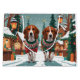 This festive design captures the joyful spirit of the holiday season, featuring an adorable dogs.Nestled in a winter wonderland, complete with a decorated Christmas tree, and beautifully wrapped presents. Snowflakes gently fall, adding a magical touch to the scene, while the vibrant colors of the holiday decorations create a warm and cheerful atmosphere.