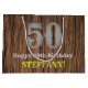 Ce look américain Old West et la conception de sac cadeau d'anniversaire d'inspiration campagnarde comprend un grand numéro de look rustique "50", le message "Happy 50th Birthday," un nom modifiable, et un faux/imitation grain de bois inspiré look motif arrière - plan. Un sac-cadeau d’anniversaire customisé comme celui-ci peut être amusant à utiliser pour envelopper des cadeaux ou des cadeaux offerts pour célébrer le cinquantième anniversaire de quelqu’un. [~Z0000470]