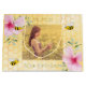 Pour une fête d'anniversaire d'été de 50e (ou de n'importe quel âge). Jaune, arrière - plan blanc avec un motif de nid d'abeille. Décoré de fleurs tropicales roses, d'hibiscus et d'abeilles jolies. Ajoutez votre propre photo. Modèles pour une date et l'âge 50. Lettres de couleur verte.