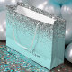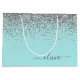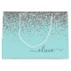 Grand Sac Cadeau Aqua Bleu Turquoise Argent Pailleté Monogramme