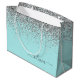Grand Sac Cadeau Aqua Bleu Turquoise Argent Paillettes Monogramme
