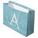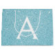 Grand Sac Cadeau Aqua Parties scintillant bleue Turquoise et Monogr