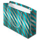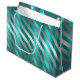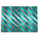Grand Sac Cadeau Aqua rayé argent Noël moderne