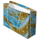Grand Sac Cadeau Aquarelle bleue Marbre et or Foil