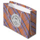 Ce éffrayant & mignon sac cadeau de fête d'Halloween comporte des araignées dessinées à la main et des toiles d'araignée contre un très bel arrière - plan Halloween Plaid (orange, violet, noir & blanc) avec un cadre hexagone élégant sur les deux côtés présentant "Happy Halloween" et votre nom de famille.