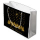 Grand Sac Cadeau Arbre de Noël en or brillant, lune, étoiles sur no