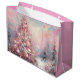 Grand Sac Cadeau Arbre de Noël impressionniste Whimsical bleu rose