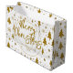 Un magnifique sac cadeau de Noël Joyeux. Ce design présente des arbres de Noël et des flocons de neige de couleur or et argent. Une façon spéciale d'ajouter une touche de glamour à votre cadeau de vacances.