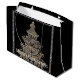 Pour les cadeaux difficiles à envelopper vient ce beau sac cadeau noir qui a un magnifique arbre de Noël élégant. Si joli et se démarquera sûrement parmi vos cadeaux. Customisez le texte ou supprimez-le si vous le souhaitez.