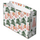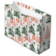 Jolis arbres de Noël bohémiens rustiques de couleur verte, rose et rouille sur ce sac cadeau. Disponible en trois tailles.