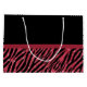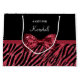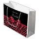 Votre fille de partie adolescente se sentira immergé dans le luxe girly avec ce concepteur chic rouge et noir parties scintillantes-comme le sac de grande taille de cadeau d'impression de zèbre avec un ruban d'étincelle de paillette attaché dans un arc luxe. Personnalisez ces tape-à-l'oeil et conception fascinante de mode de poster de animal en ajoutant son nom. Image imprimée d'appartement, parties scintillantes ou ruban non réelles.