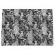 Motif Art nouveau basé sur une tapisserie vintage de William Morris et inspirée d'un tissu représentant une scène forestière avec des paons, des lièvres et des renards, numériquement rendus en noir et blanc