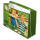 La petite Doris et son frère Billy s'amusent à passer des appels téléphoniques à manivelle. Ou des appels téléphoniques de farce. L'une ou l'autre est correcte. Une image publicitaire vintage amusante fait un sac cadeau tout aussi amusant !! Notez que la scène apparaît des deux côtés du sac, en image miroir. Tu veux voir plus vieux ? Voici la page Facebook de mon magasin : www.facebook.com Et voici mon blog :www.fullservicebohemian.blogspot.com